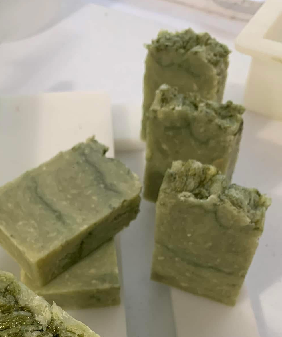 Wrap yourself in the soft, uplifting scent of Fuzzy Green. This handcrafted bar blends creamy shea butter and cocoa butter with nourishing oils to create a rich, moisturizing lather. Kaolin clay adds a silky touch, while natural mica gives each bar its own artisan look. Perfect for an everyday refresh that feels both comforting and clean.