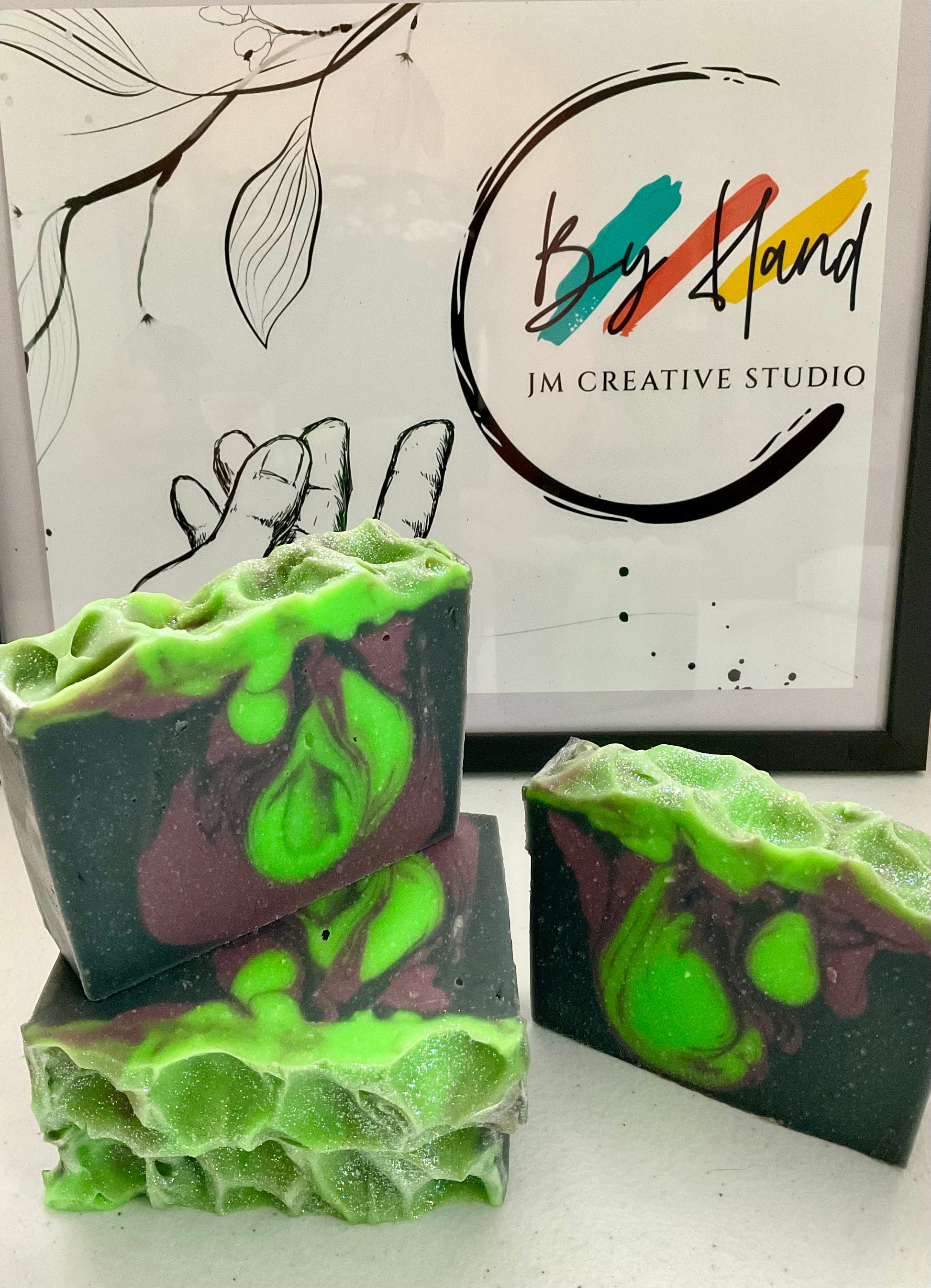 Soaps are handmade in small batches, all soaps are hand-cut, cured, and hand-wrapped; so shapes, colors, and sizes will vary
